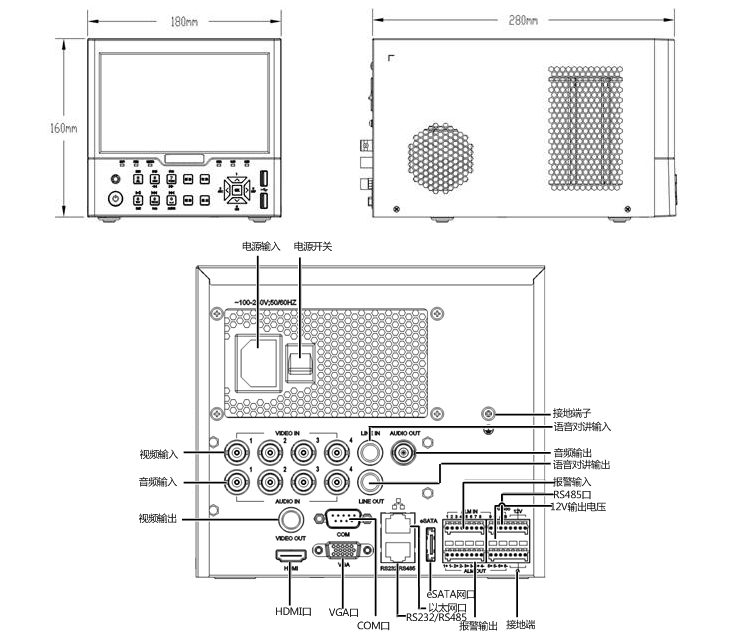 支持通過設備上的CVBS、VGA、HDMI接口連接監視器進行輸出預覽