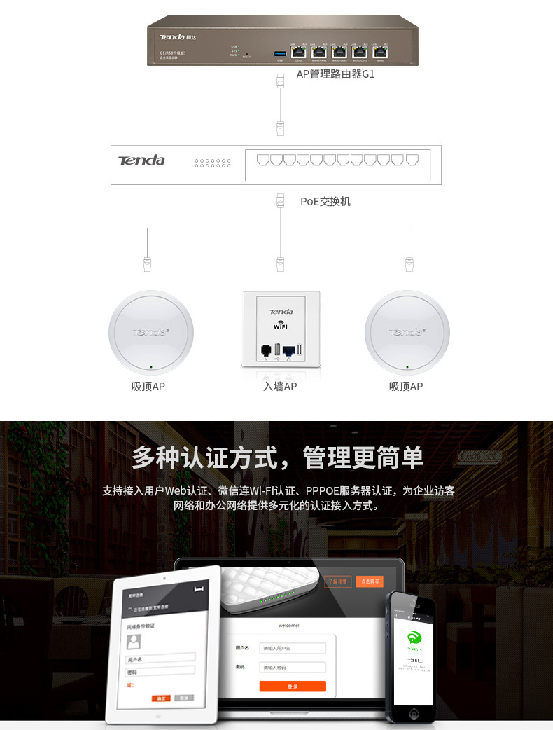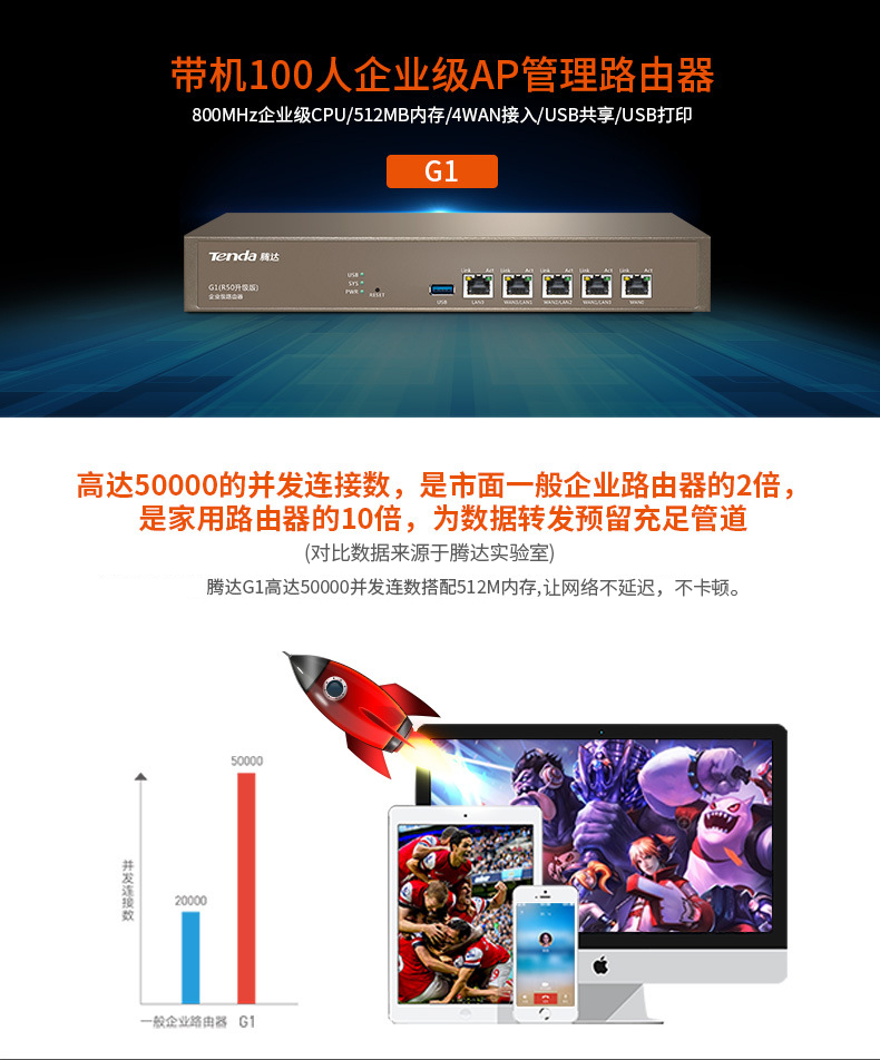 :騰達G3企業級千兆端口有線路(lù)由器商用微信營銷無線AC控制器