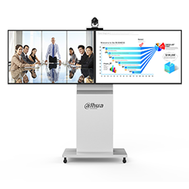 大(dà)華一體(tǐ)式雙屏創真系列DH-VCS-RPS320采用一體(tǐ)化設計(jì),集成高清攝像機(jī)、編解碼器、麥克風(fēng)、顯示屏、推車支架等